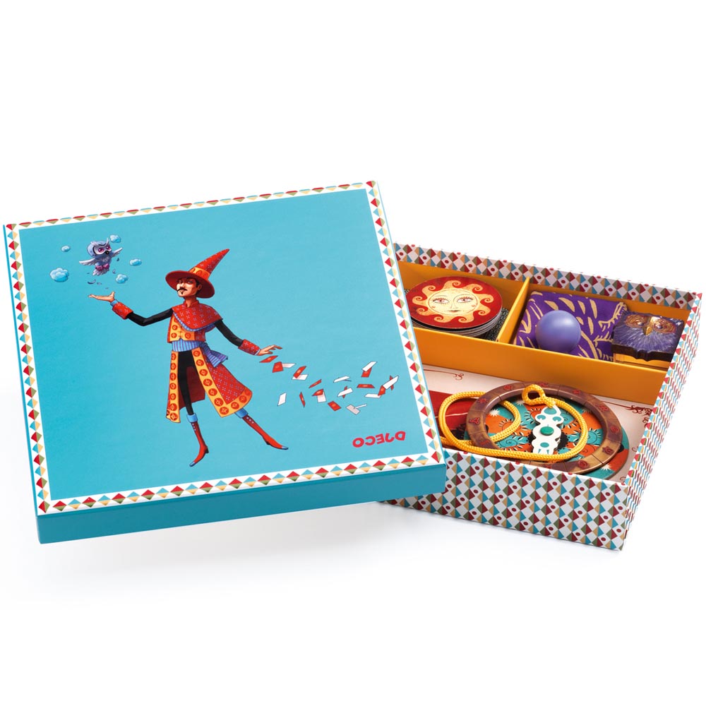 Con este juego cada niño puede convertirse en bruja o mago. Contiene todas la herramientas suficientes para 20 trucos y mas si eres inteligente. De excelente diseño y calidad.