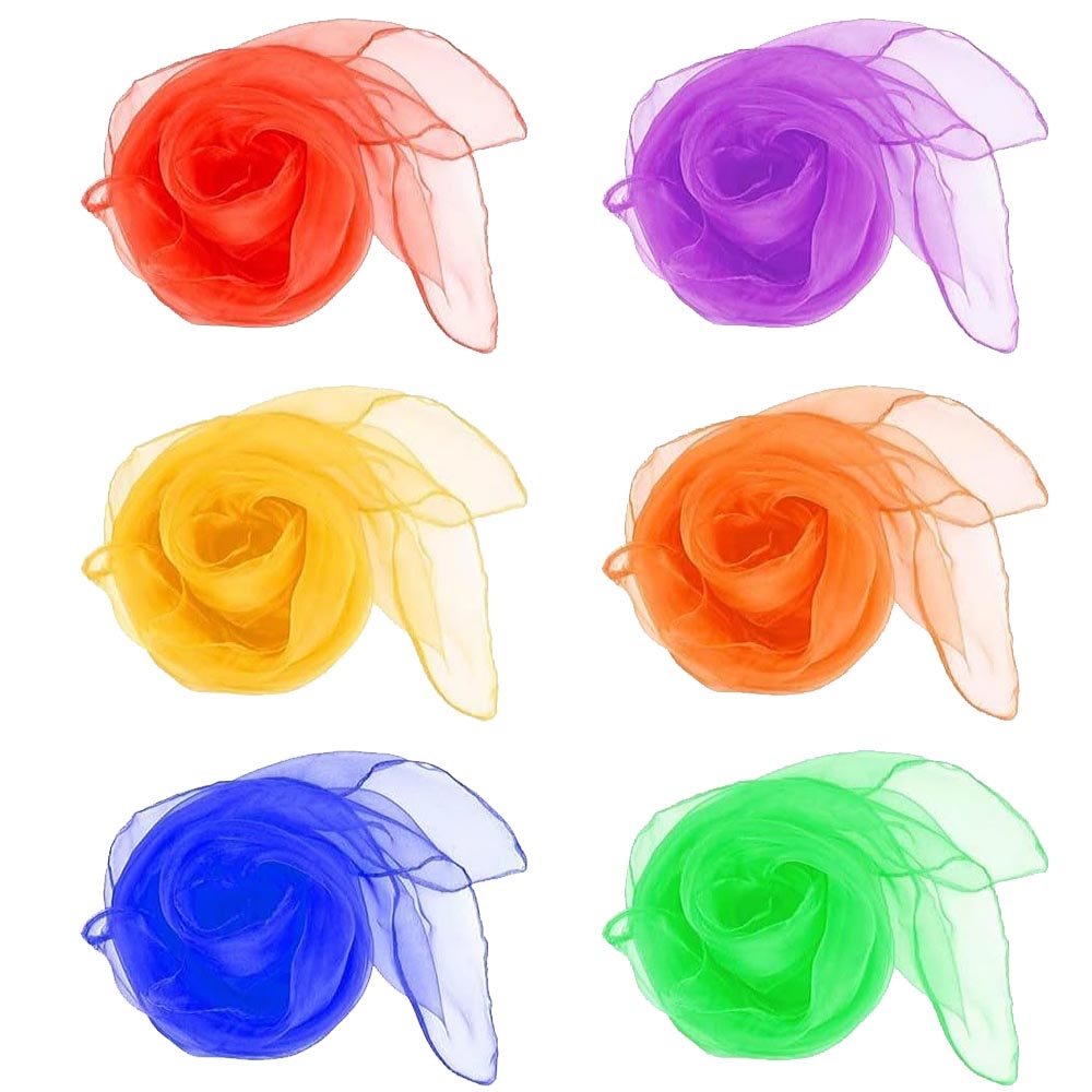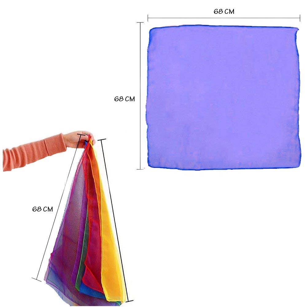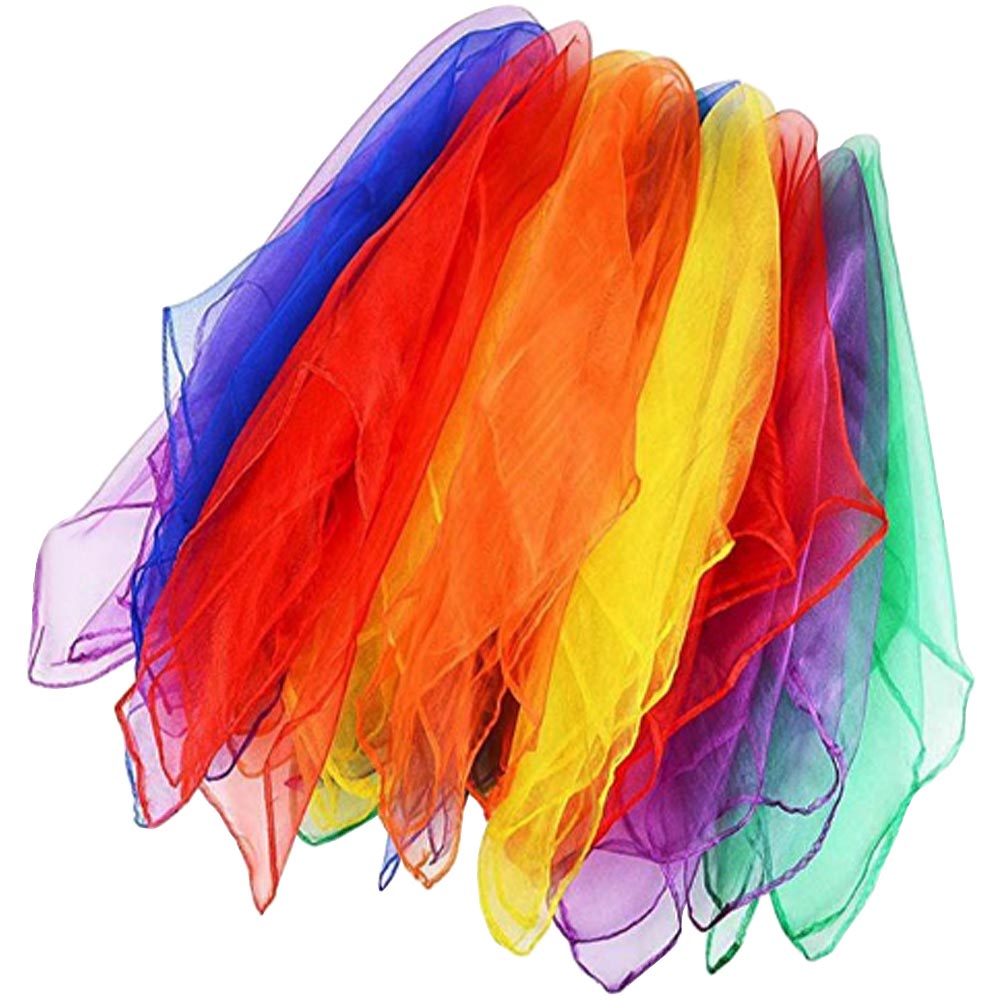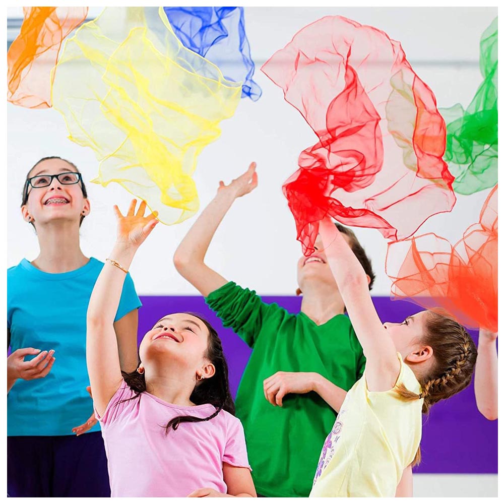 6 pañuelos de gasa para variadas actividades de juegos sensoriales y malabares. Perfectos para trabajar en la coordinación mano-ojo, expresiones artísticas, actividades de movimiento, decoración y trabajo colectivo. De 6 colores surtidos (pueden variar a la referencia de la foto)