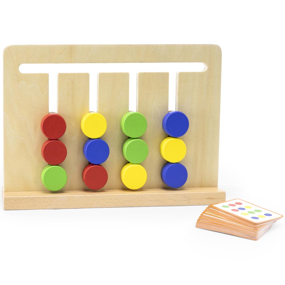 Divertido juego de doble lado diseñado para el aprendizaje de colores, formas y patrones de una forma muy entretenida. Este juego educativo es ideal para que los más pequeños aprendan utilizando uno de los lados algunos colores y con el otro lado colores y formas geométricas. Incluye tarjetas con diferentes patrones que los niños y niñas deben replicar en el tablero desarrollando así el pensamiento lógico, las habilidades motoras finas, la observación y la concentración. Fabricado en material suave y resistente con colores vivos. Incluye 16 tarjetas con patrones impresos por ambos lados.