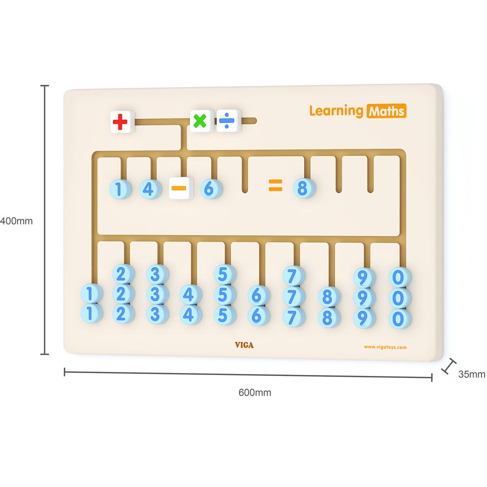 Un juego ideal para aprender matemáticas de una forma entretenida tanto en casa como en el colegio. Los niños y niñas deben mover los números desde abajo hacia arriba y los símbolos de las operaciones matemáticas básicas (suma, resta, multiplicación y división) desde arriba hacia abajo para formar operaciones matemáticas y encontrar sus resultados. De material suave y resistente y colores vivos. Fabricado en madera sostenible.