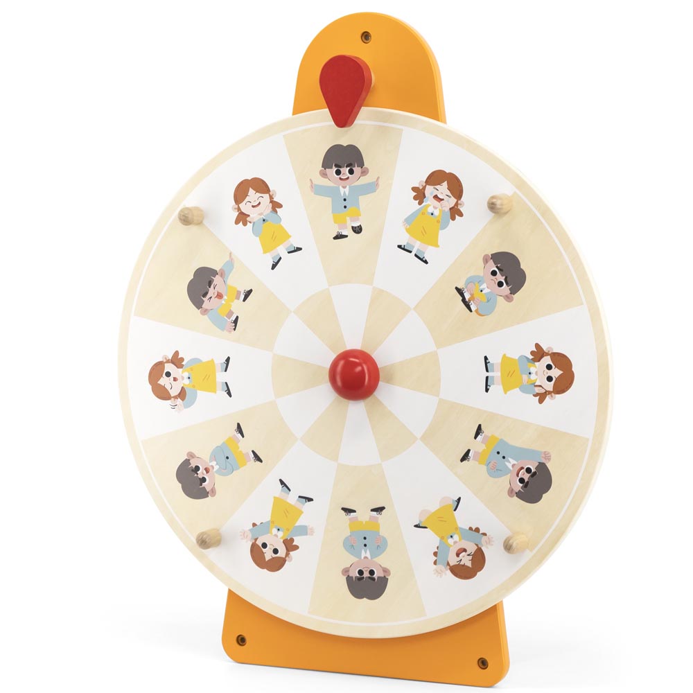 Este juego de pared interactivo muestra 12 ilustraciones de niños y niñas con diferentes emociones, solo has girar la ruleta y sigue las instrucciones de este divertido juego. Un juego desarrollado para explorar las emociones de una forma divertida y ayudar a los más pequeños en sus habilidades sociales. Recomendado para actividades grupales tanto en el hogar como en la sala de clases. Fabricado en madera. De material suave y resistente y colores vivos.