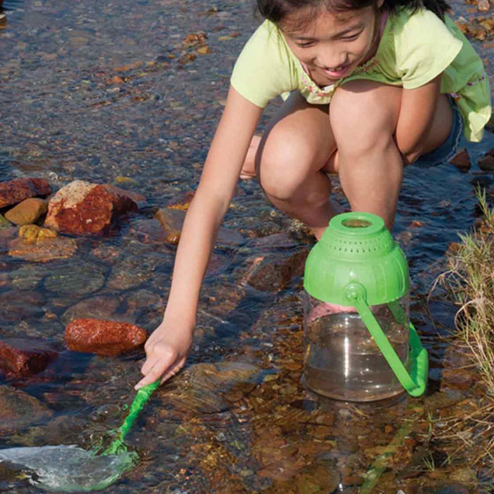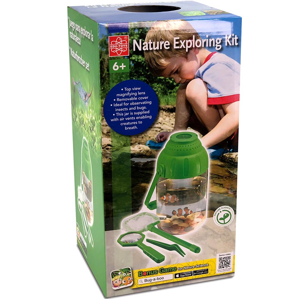 Entretenido set para que el niño descubra la naturaleza. El set cuenta con un tonel transparente con asa y tapa con lupa. Una lupa con mango, pinzas, red con mango de 2 piezas y manual de instrucciones. De excelente calidad y hermoso diseño.