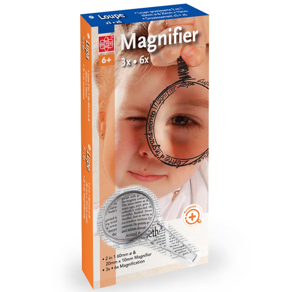 Lupa de alta calidad de 6 cm diámetro. 3 x 6 x aumento. Material resistente y durable.