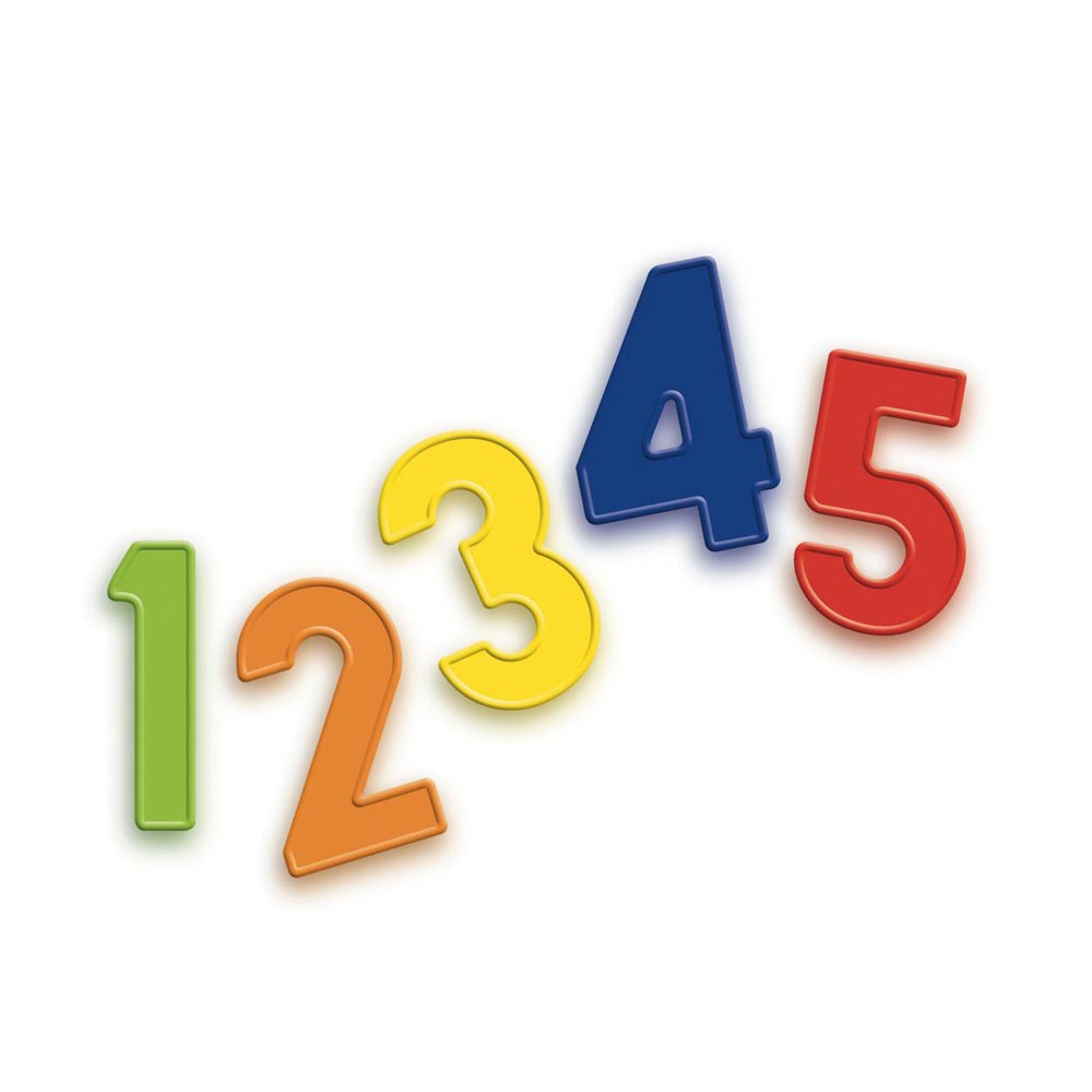 48 números para pizarras magnéticas. De plástico duro y colores vivos y brillantes.