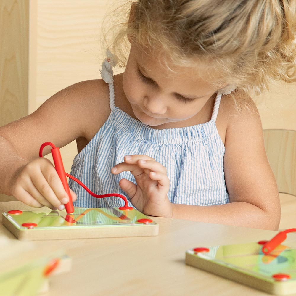 Set de escritura de pizarra magnética para estimular la motricidad fina en la primera infancia. Incluye 26 piezas. Un material didáctico ideal para jardines preescolares y colegios. De material suave y resistente. Fabricado en madera sostenible.