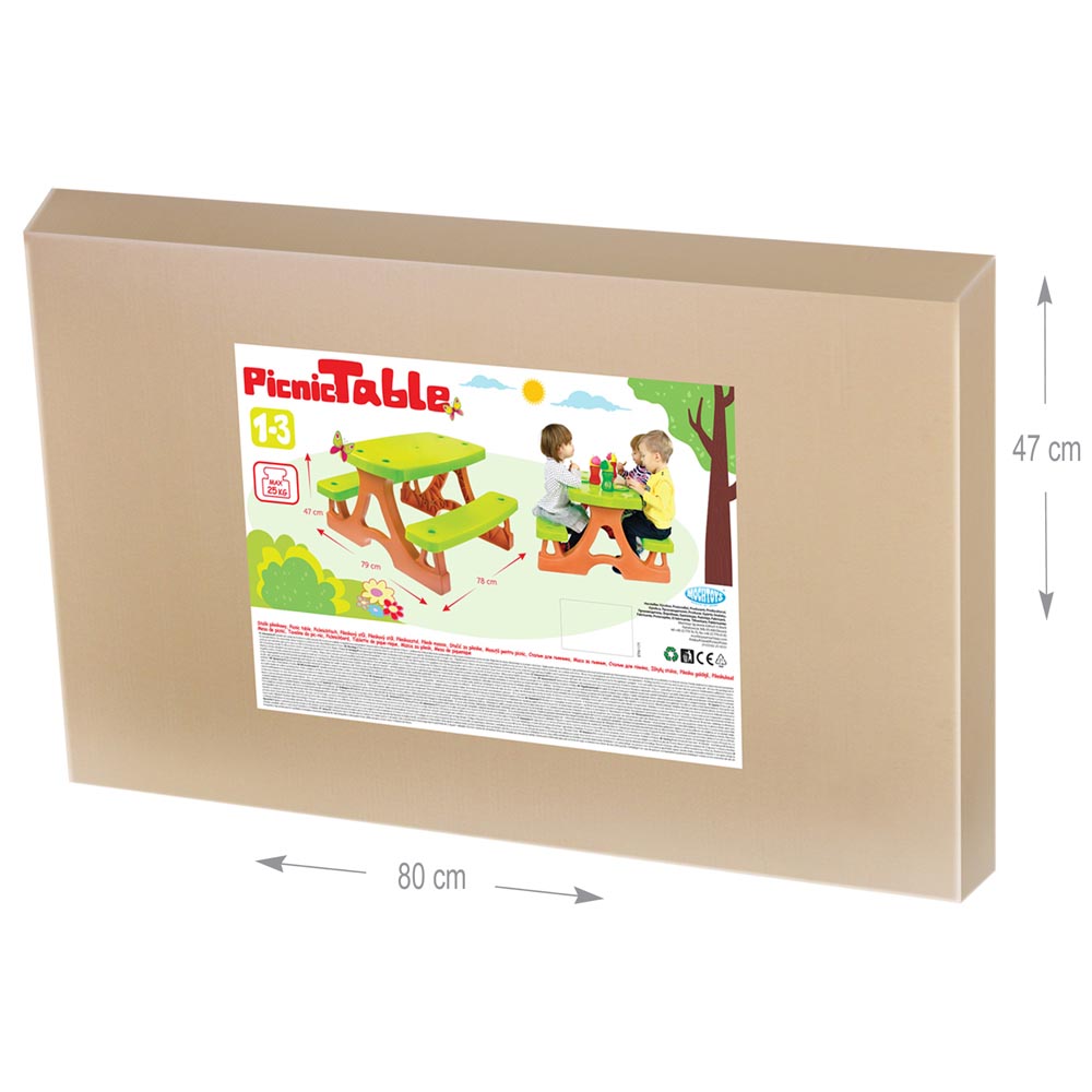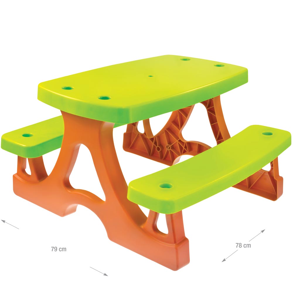 Mesa de picnic de plástico resistente con 2 bancas adheridas. De gran calidad, livianas.