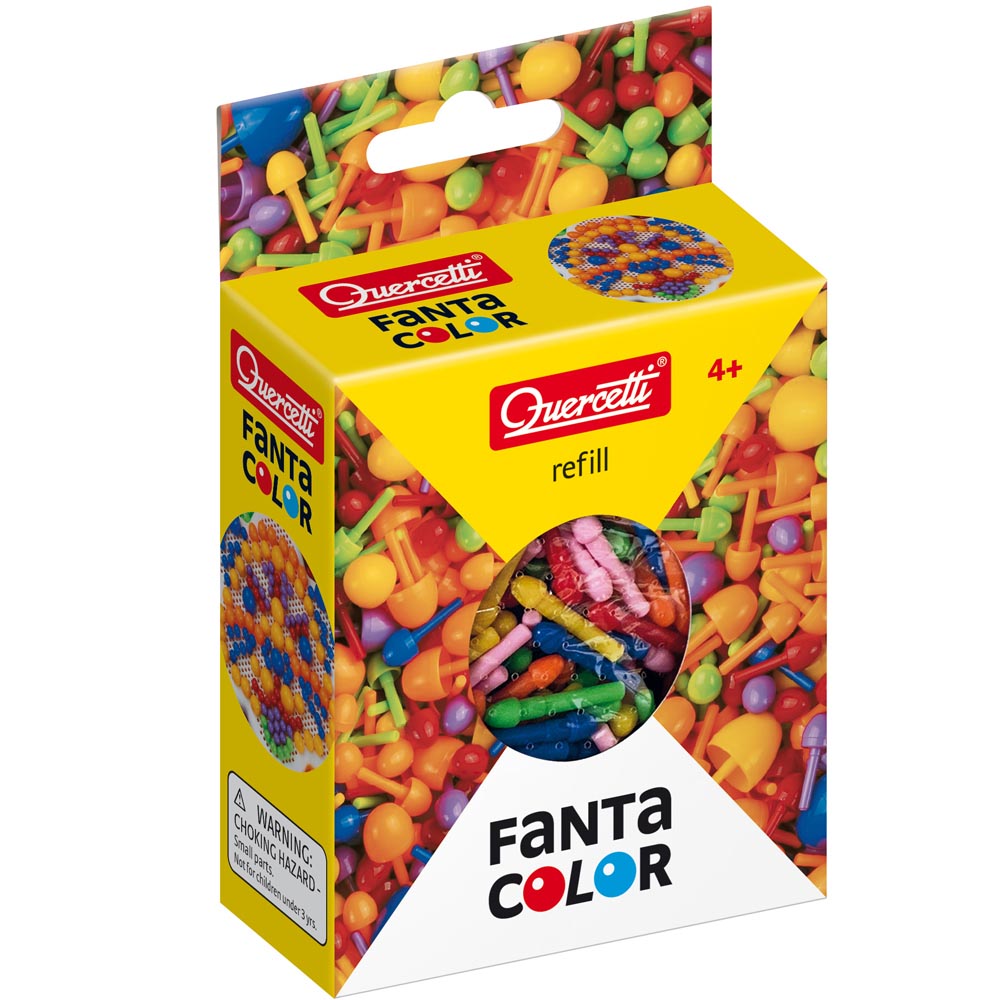Recambio de clavos Quercetti originales para componer mosaicos para niños y niñas. El paquete incluye: 450 clavijas de 5 mm de diámetro en 5 colores. Combinable con toda la serie FantaColor Basic, FantaColor Small, FantaColor Large, FantaColor Modular. Fabricado en material suave y resistente con colores vivos.