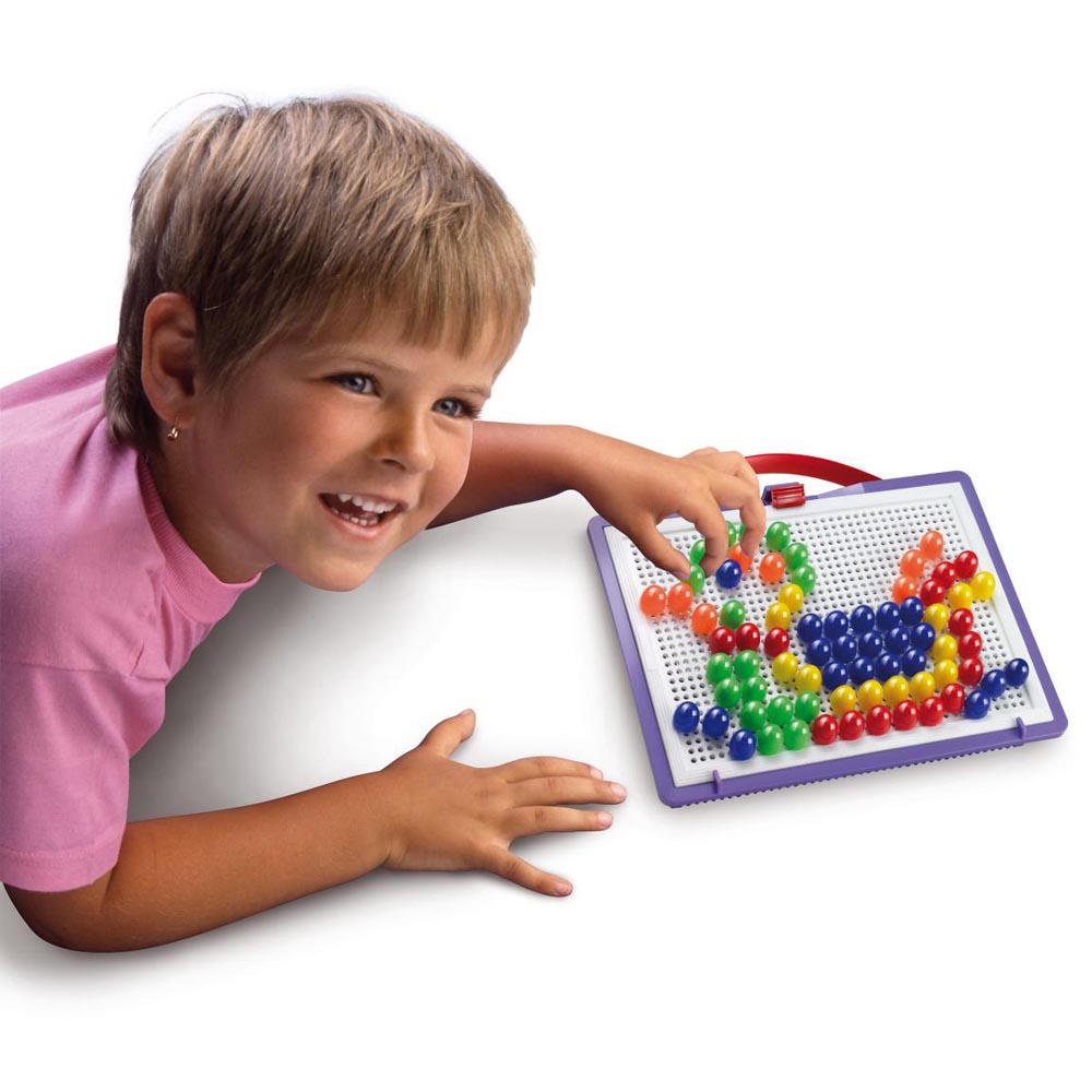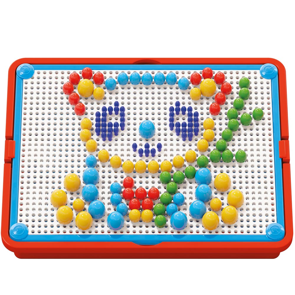Mosaico portátil con 1 plancha perforada de 16 x 22 cm, una canasta para guardar las piezas con mango y afirmador de la plancha de 23 x 17 x 3,5 cm y 100 pz. De mosaico de 1,5 cm diámetro x 3 cm. Se pueden inventar diversos mosaicos o incluso se pueden copiar los ejemplos de la guía. Todas las piezas se guardan, ya que la tableta de encaje tiene también la función de tapa. El mango ayuda al transporte y a colgar el mosaico en la pared con el fin de decorar. De gran colorido y excelente calidad.