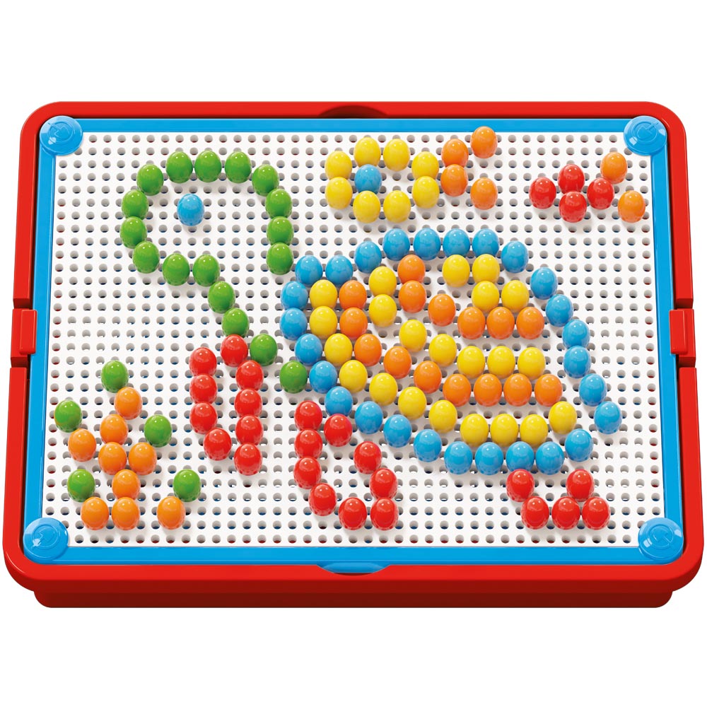 Mosaico portátil. Se pueden inventar diversos mosaicos o incluso se pueden copiar los ejemplos de la guía. Todas las piezas se guardan, ya que la tableta de encaje tiene también la función de tapa. El mango ayuda al transporte y a colgar el mosaico en la pared con el fin de decorar. De gran colorido y excelente calidad.