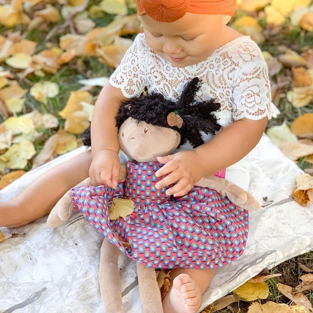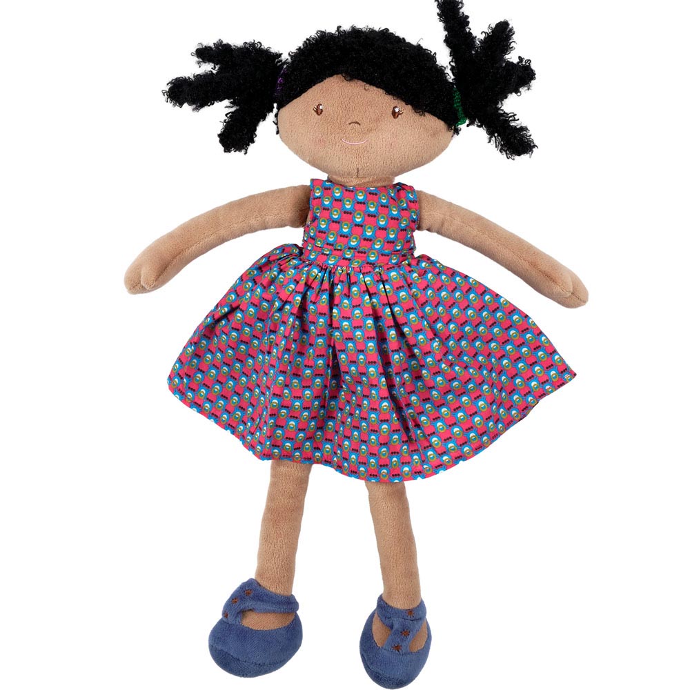 Esta hermosa muñeca de Tikiri acompañará a los más pequeños y las más pequeñas a todas partes. Muñeca de trapo de cuerpo suave con rasgos faciales bordados y ropa estampada. Su material suave es ideal para la primera infancia, no toxico. Todos los productos de esta maravillosa marca son fabricados de forma sostenible y con materiales biodegradables, fabricación socialmente responsable, hecho a mano.
