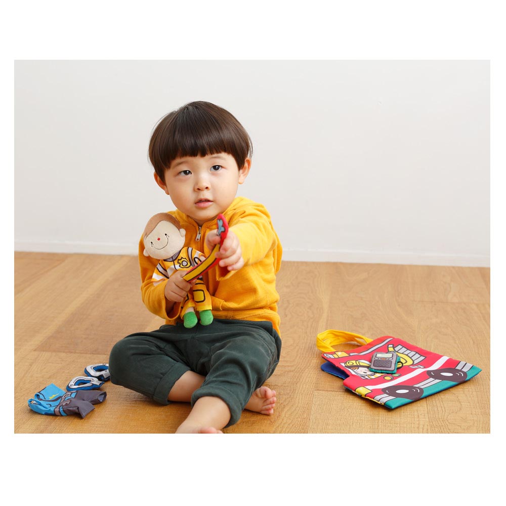 El primer muñeco para jugar a los juegos de roles. De genero blando. Contiene bolsa de policía y reverso bombero 24,5 x 22 cm, libro de cuentos policía y reverso bombero 17 x 17 cm, muñeco 12 x 21 x 3 cm, walkie talkie 5 x 10,5 cm, esposas 6 x 6,5 cm, manguera corta fuegos 2 x 29,5 cm y ropa de policía y bombero 10 x 12,5 cm.