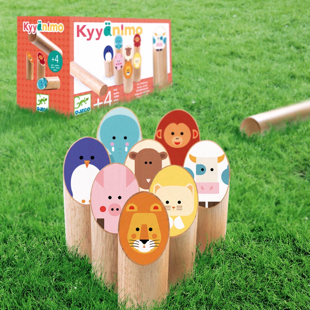 Juego de bowling de madera para divertirse con diseño de animales. Especialmente adaptado para los niños en su tamaño y en las reglas simples. El juego contiene 10 palitroques de madera de 13 cm, un bastón de lanzamiento, tarjetas de puntuación, bolsa de tela e instrucciones. Un juego de habilidad para 2 o más jugadores.
