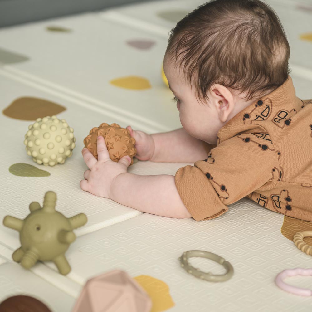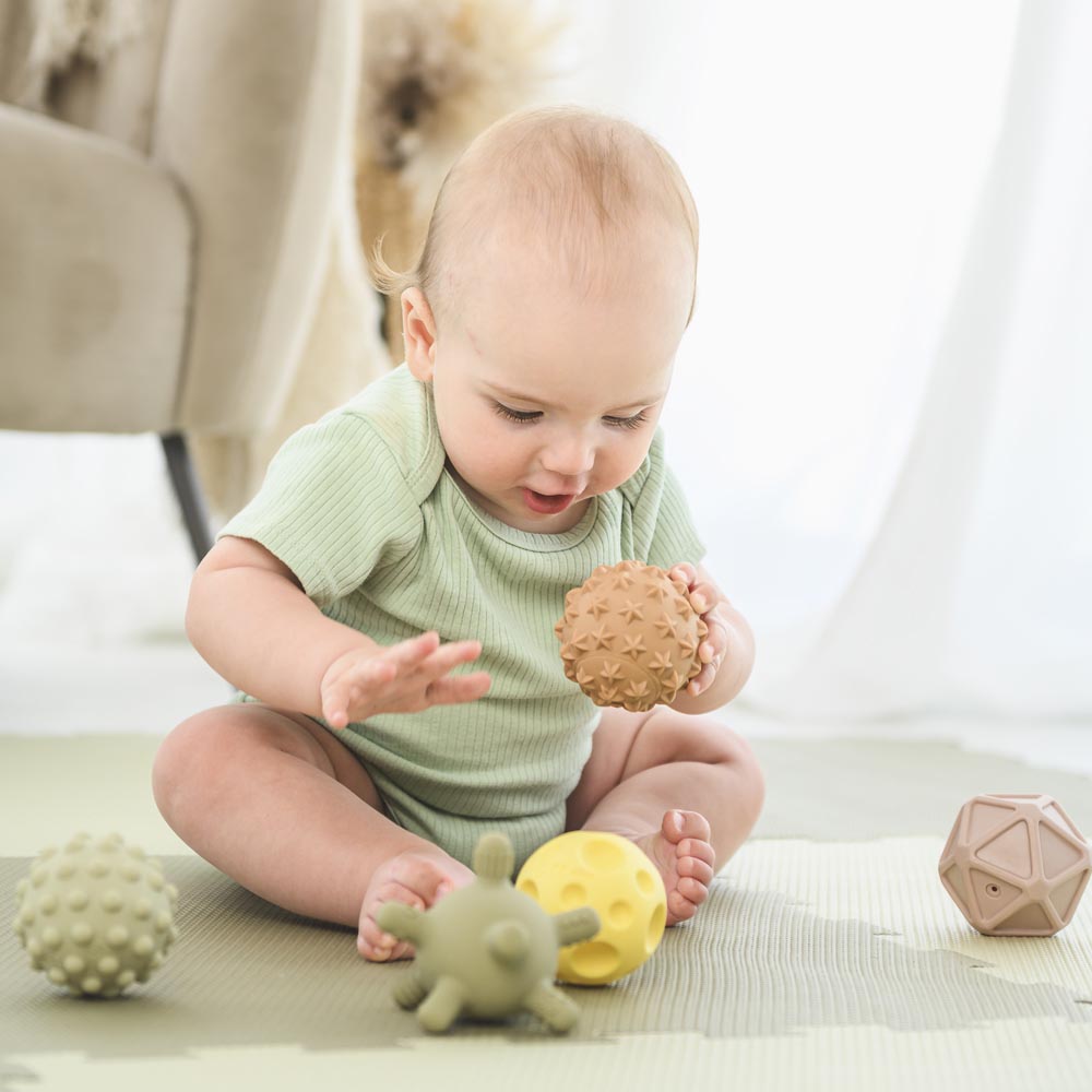 Estas minibolas sensoriales contienen una variedad de formas y texturas que estimularán el desarrollo sensorial y motor de bebés y niños pequeños por igual. Lo mejor para pasar tiempo boca abajo y gatear. Diseñadas para desarrollar habilidades sensoriales a través de texturas y colores, habilidades motoras finas a través de tamaños variados y habilidades motoras gruesas a través de los rebotes y haciendo que los bebés se muevan. Fabricadas en material suave y resistente.