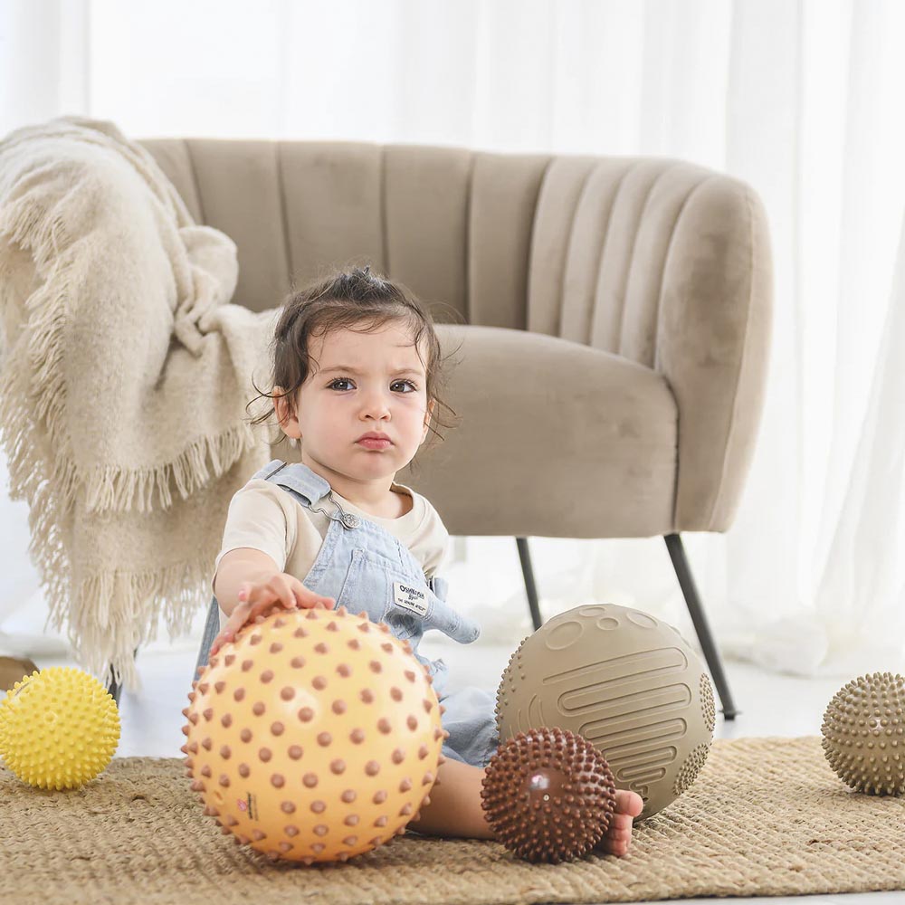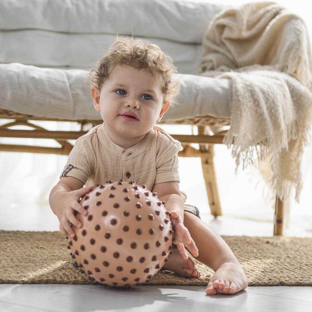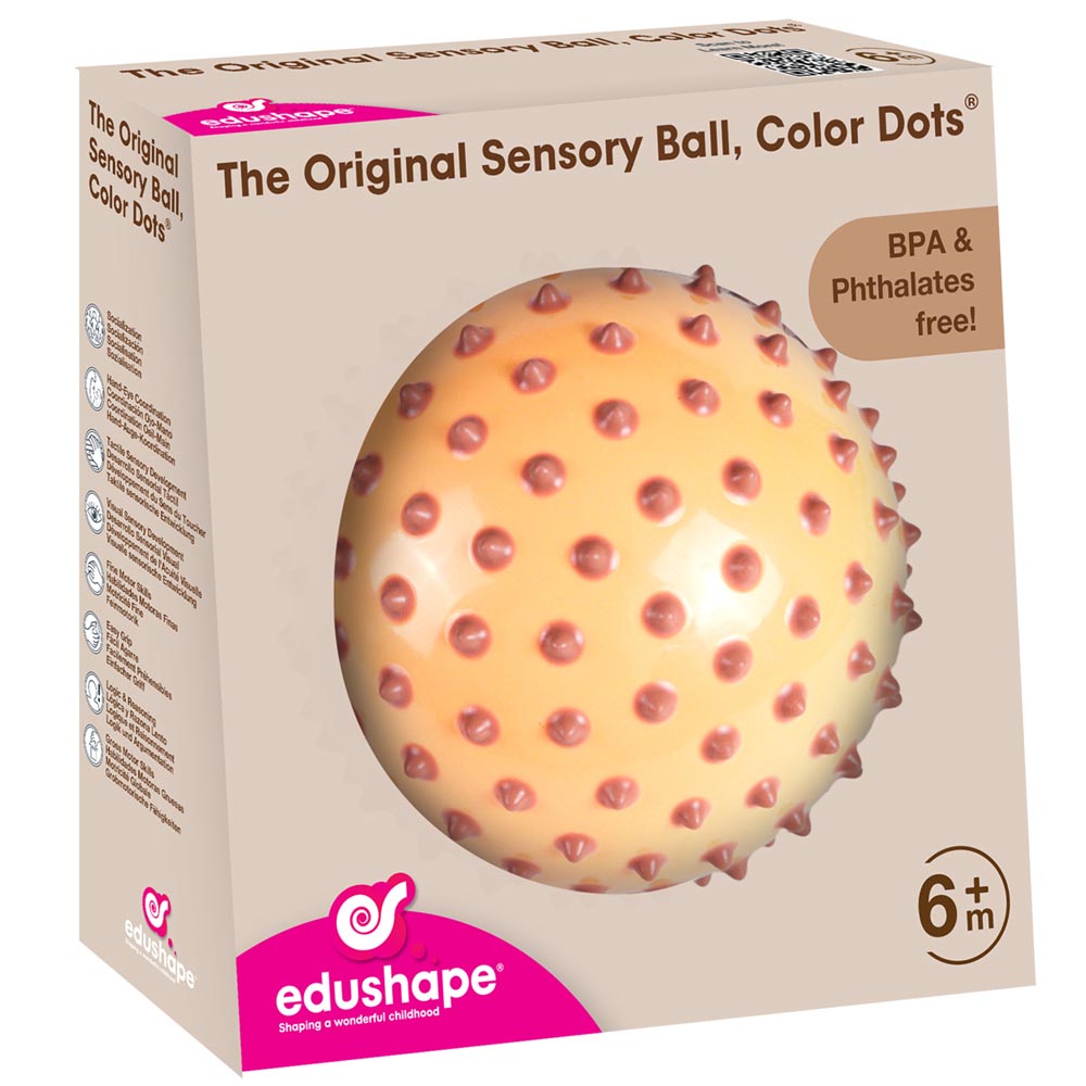 Hermosa pelota sensorial desarrollada para estimular las habilidades motoras de los más pequeños de una forma muy divertida. Fabricada en material suave y resistente. Recomendada a partir de los 6 meses. Viene en un hermoso display que la convierte en un lindo regalo. Diámetro 18 cm.