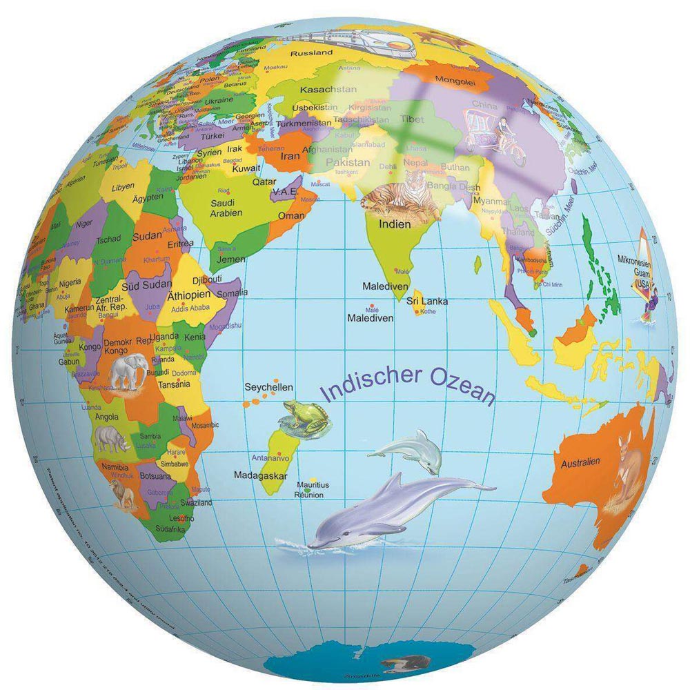 Pelota suave fabricada en vinyl con un hermoso diseño de Mapa Mundo para pasar horas de diversión. De material suave y resistente y colores vivos. Tamaño 23 cm diámetro.
