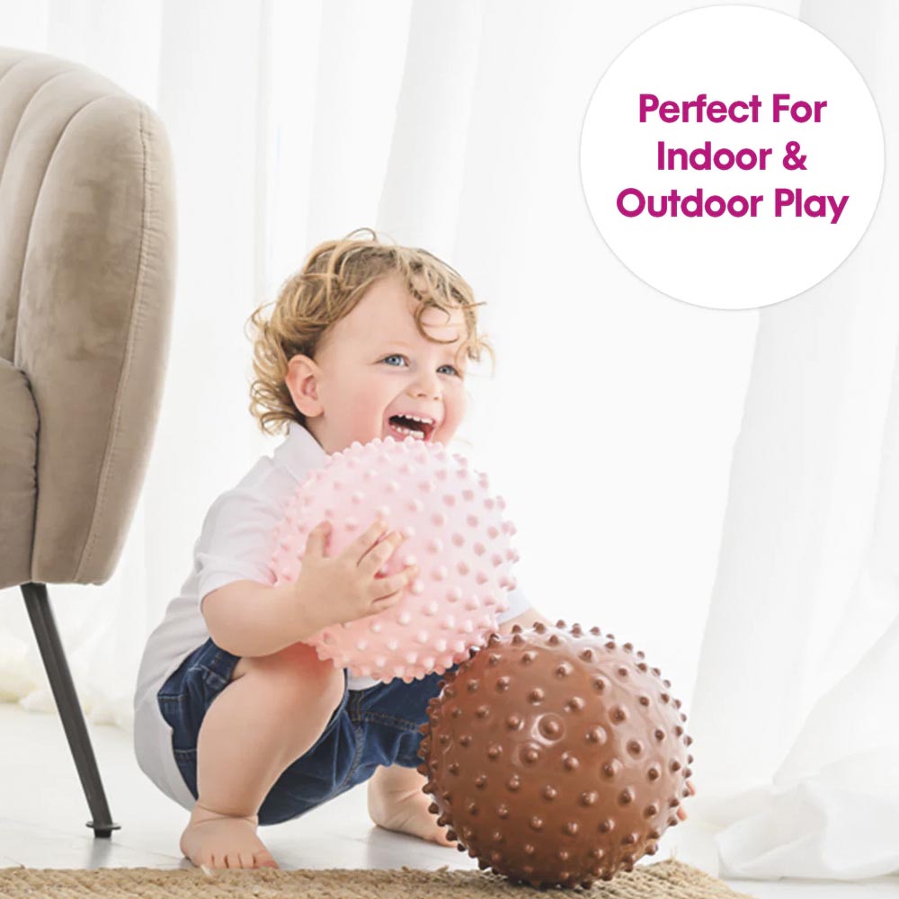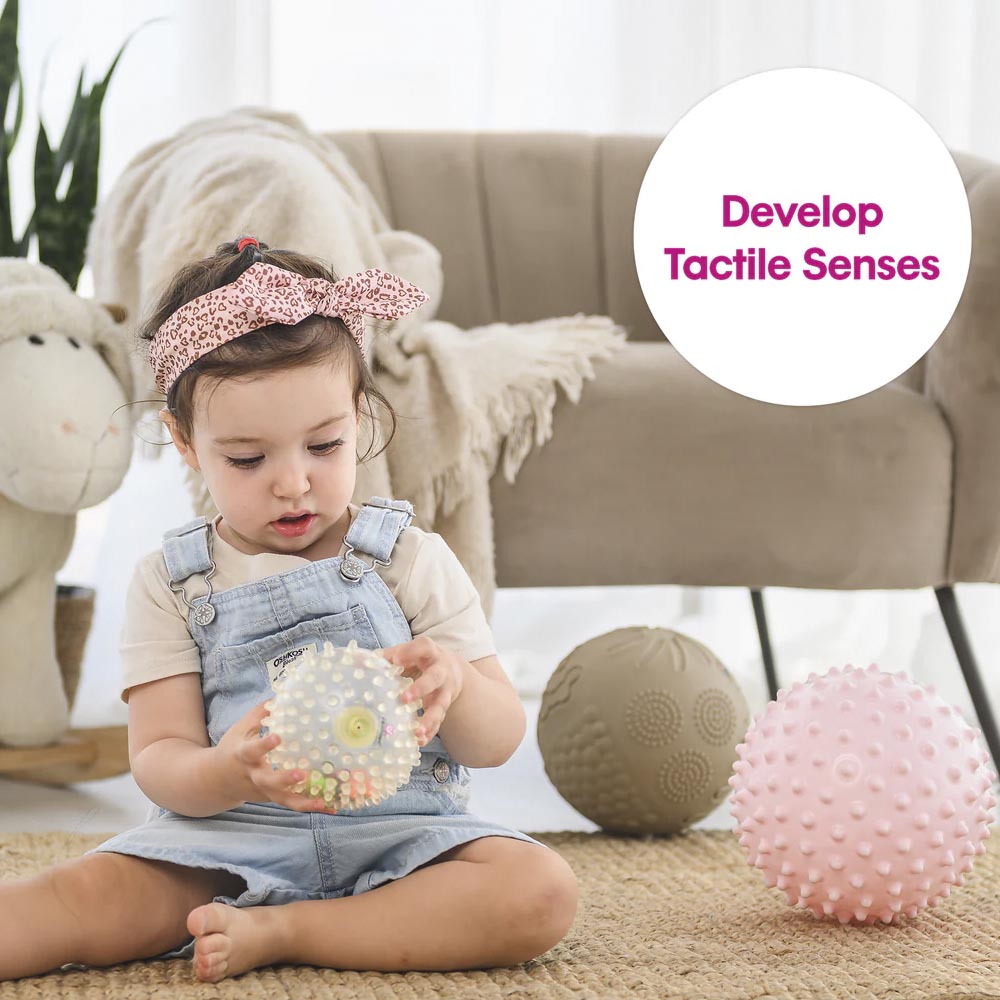 Estas pelotas sensoriales originales de Edushape de colores suaves y gran calidad son excelentes para el desarrollo de los más pequeños. Si existe un juguete universal para el desarrollo infantil estas pelotas son ese juguete. Diseñadas para desarrollar la sensibilidad a través de texturas y colores, la motricidad fina a través de distintos tamaños y la motricidad gruesa a través del rebote y el movimiento del bebé. Fabricadas en material suave y resistente. Incluye 4 pelotas: 2 de 10 cm de diámetro y 2 de 25 cm de diámetro.