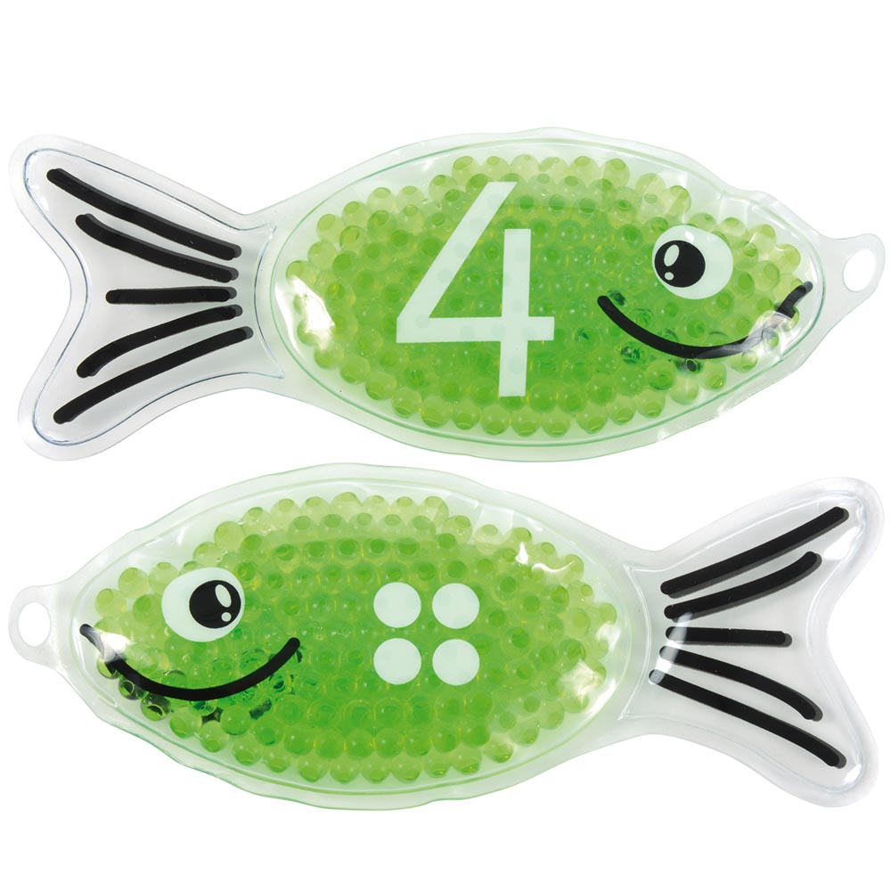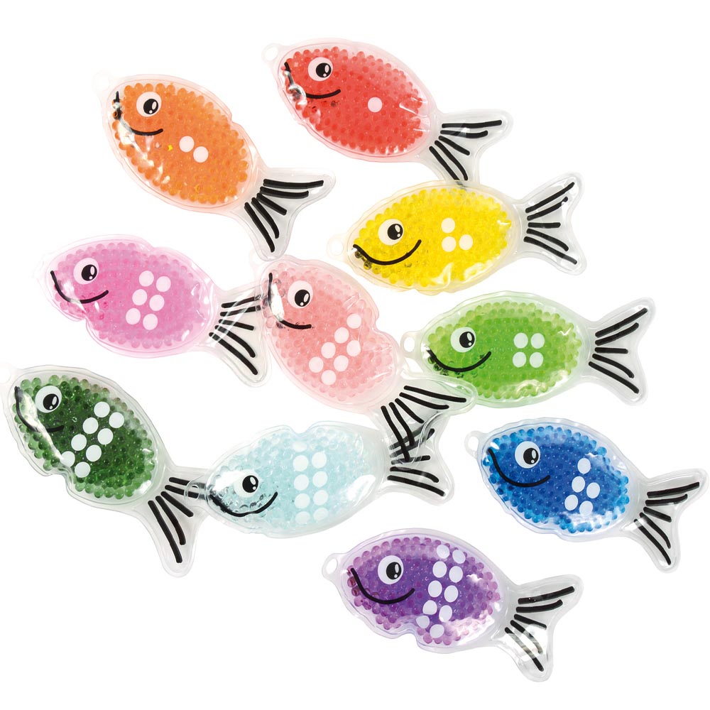 Divertido juego de suaves peces sensoriales para pasar horas de diversión. Incluye 10 peces de burbujas para apretar y crear los mas divertidos juegos. Cada pez tiene un color diferente, y de un lado un numero escrito y del otro puntos según la cantidad indicada por el numero, esto hace que sea un juego para todas la edades, los niños y niñas mas pequeños pueden reconocer los colores, mas adelante números y luego cantidades. El largo de los peces es de 16 cm aproximadamente. Estos peces son ideales para los estímulos sensoriales ya que tienen pequeñas perlas de agua en su interior que las hacen muy atractivas al tacto. De material suave y resistente y colores vivos.