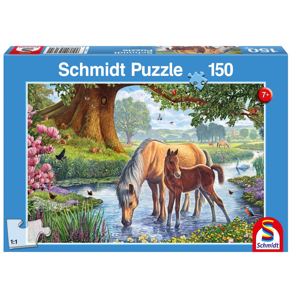 Hermoso puzle de 150 piezas con ilustración de caballos en el agua.
