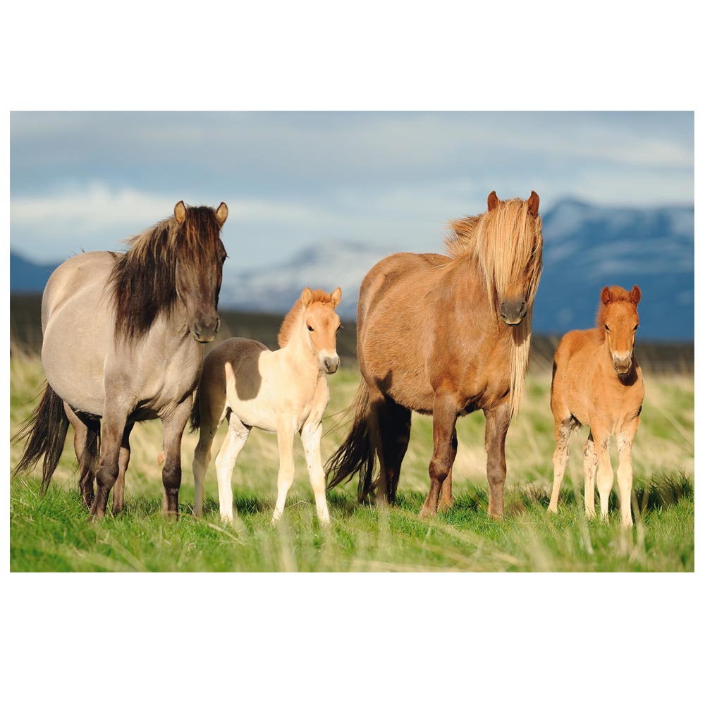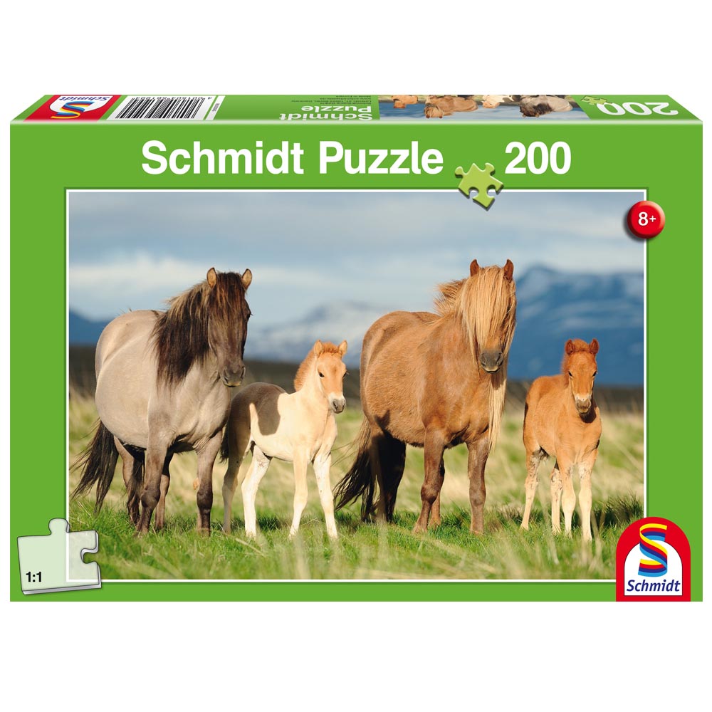 Hermoso puzle de 200 piezas con imágenes de una preciosa familia de caballos.
