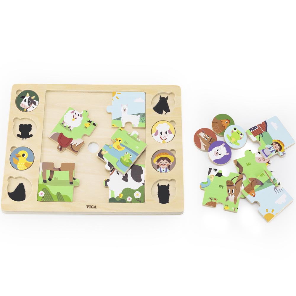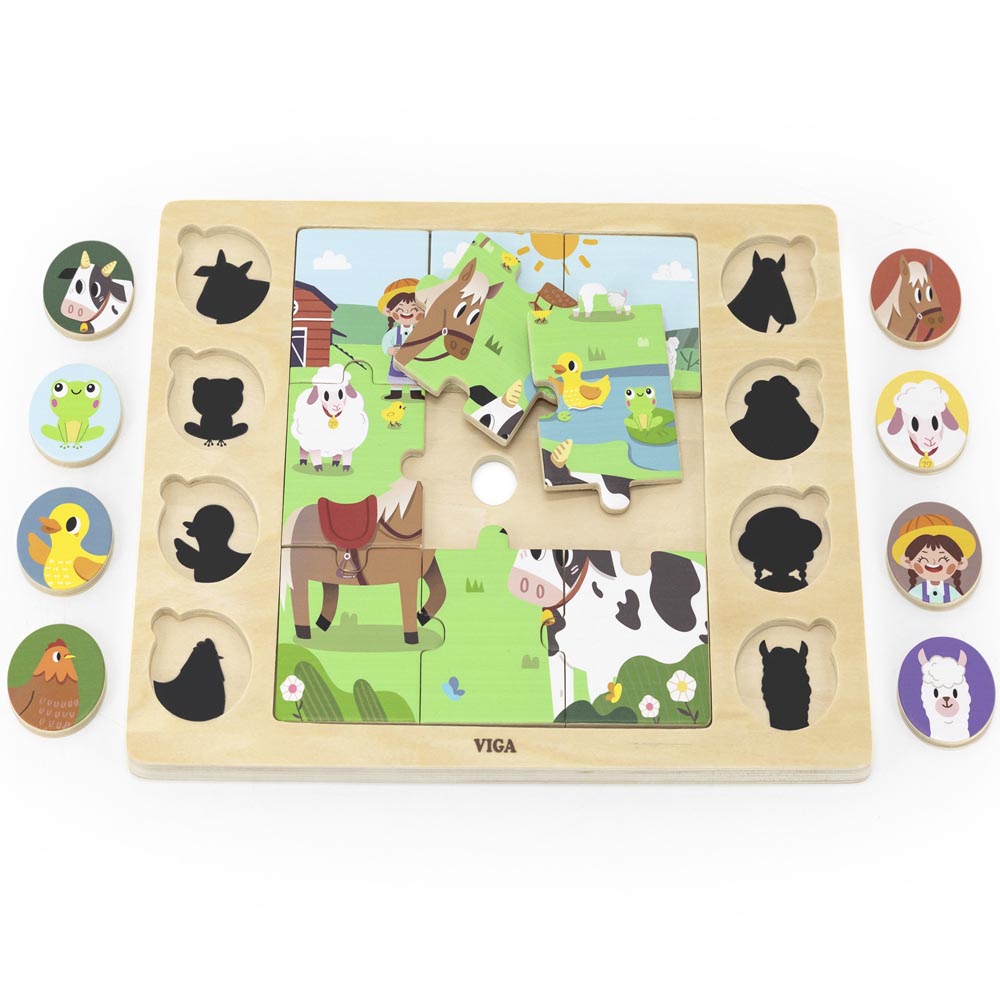 Un hermoso puzle con variadas actividades educativas para estimular el desarrollo cognitivo de los más pequeños de una forma muy entretenida. Incluye un puzle de 9 piezas con ilustraciones de la granja en el centro, luego de armarlo los niños y niñas deben unir a los personajes con su sombra, luego deben encontrar a los personajes en el puzle. Un completo juego educativo que estimula el desarrollo de la observación, la concentración, las habilidades motoras finas, la coordinación mano-ojo y mucho más. Fabricado en material suave y resistente y colores vivos.