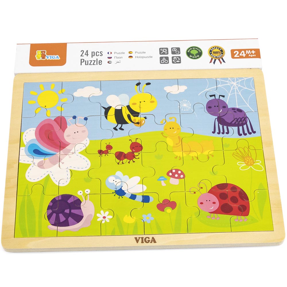 Puzle de 24 piezas con dibujos de el mismo patrón en la base de madera plana. De excelente calidad y diseño.