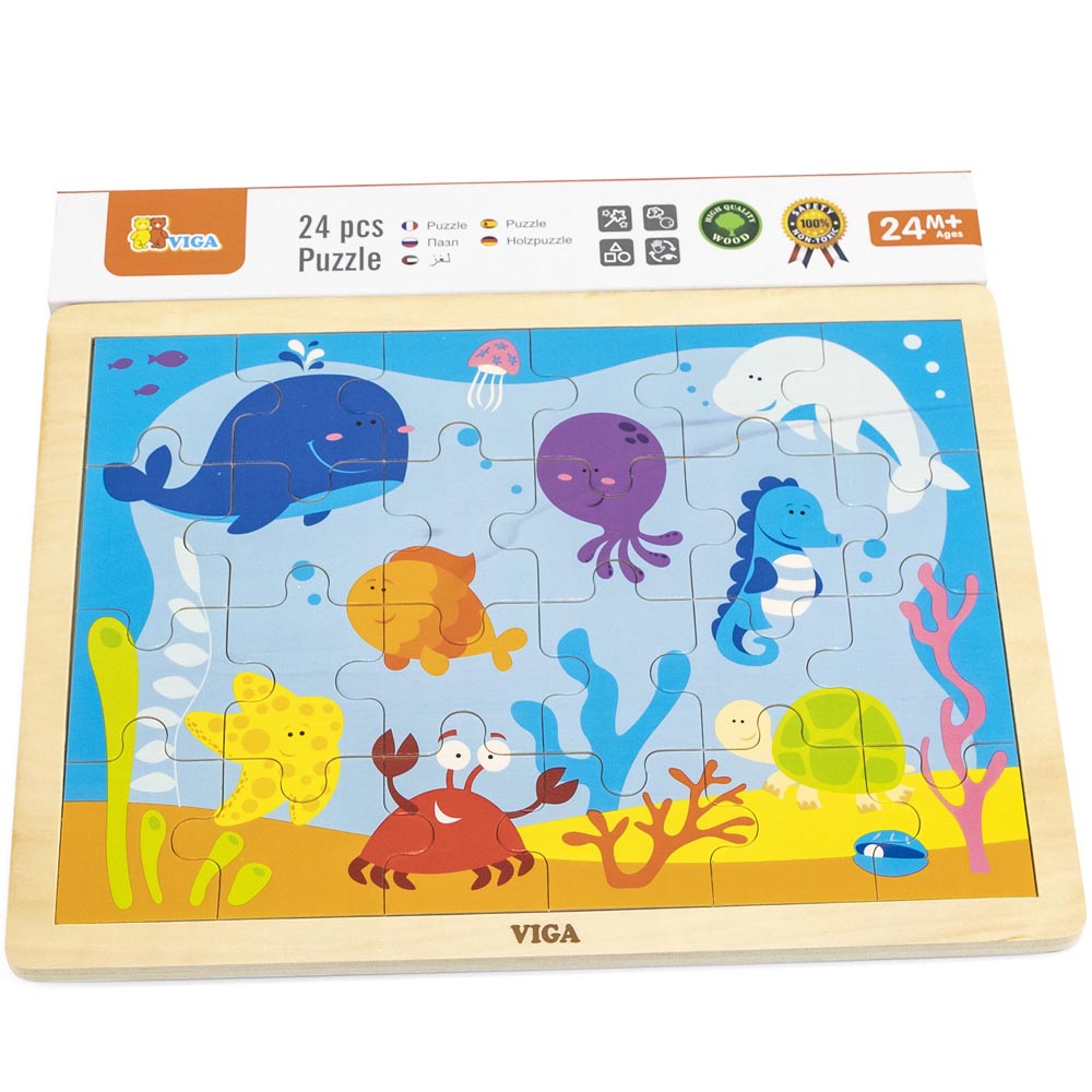Puzle de 24 piezas con dibujos de el mismo patrón en la base de madera plana. De excelente calidad y diseño.