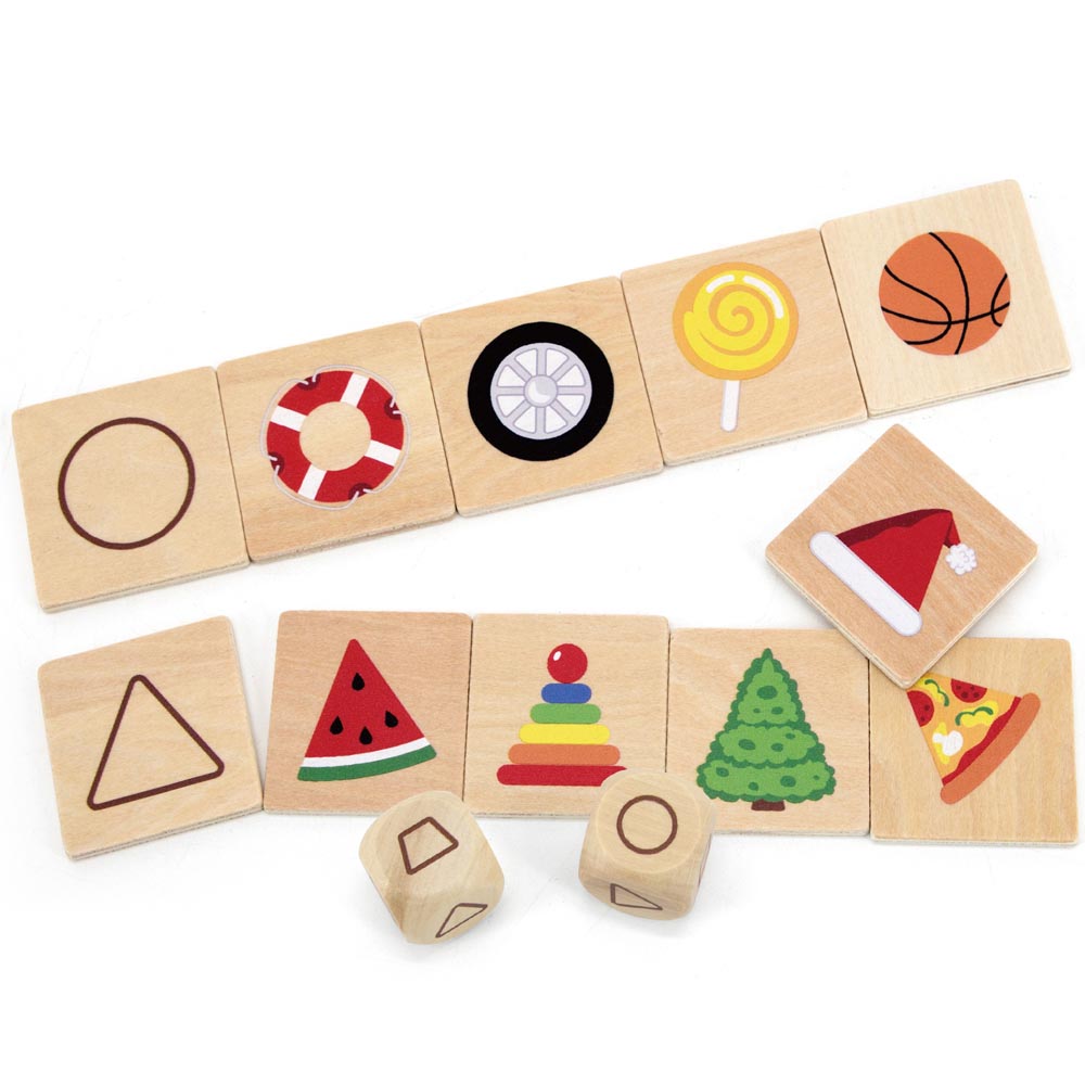 Juego educativo que ayudara al niño a recordar 5 formas, un triangulo, un circulo, un cuadrado, un rectángulo y un trapecio. Arma una serie de puzles con dibujos de objetos de la misma forma.
