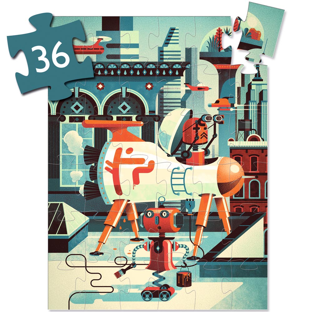 Puzle de 36 piezas que cuenta una entretenida historia. Su caja es la silueta de el tema de el puzle por lo que es también un decorativo adorno para la pieza de los niños. De gran calidad y resistencia. Puzle de 42 x 30 cm armado.