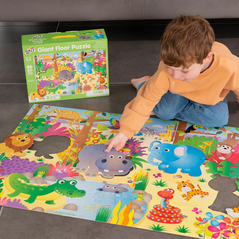 Puzle de suelo de 30 piezas (18 x 17 cm cada pieza aprox) incluidas 8 plantillas. Tiene muchas cosas interesantes por descubrir, por lo que el niño podrá hacerlo una y otra vez. Hecho en cartón grueso forrado con una superficie lavable. Desde 3 a 6 años. Dimensiones puzle armado 100 x 20 cm.