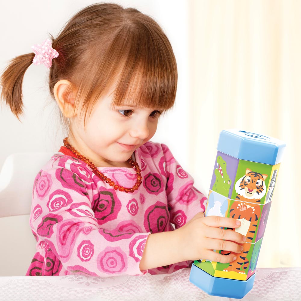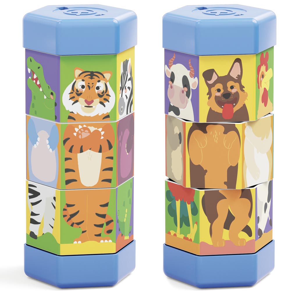 Divertido puzle rotante con entretenidas ilustraciones de animales, un juego para desarrollar las habilidades de observación y la motricidad fina. De material suave y colores vivos.