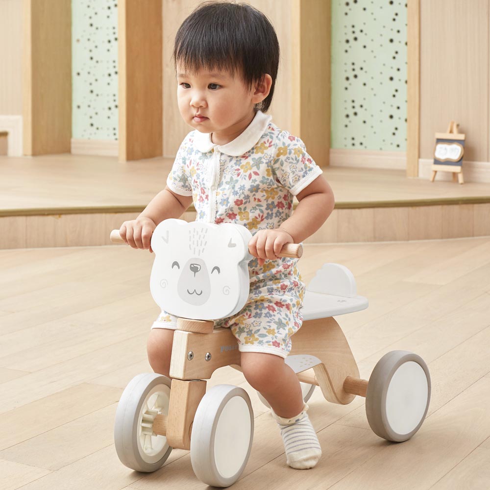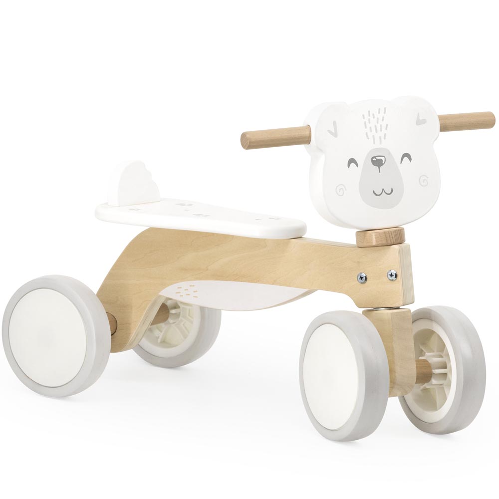Divertido rodado fabricado en madera para pasar horas de diversión. Sus 4 ruedas le dan mayor seguridad para llevar a los niños y niñas a todas partes. Diseñado en suaves colores pasteles. Ideal para el desarrollo de las habilidades motoras gruesas.