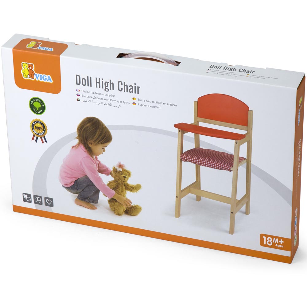 Hermosa silla de madera para muñecas fabricada en madera sostenible sólida pasar horas de diversión. Un divertido accesorio para juegos de rol en los cuales los niños y niñas desarrollan habilidades sociales, ponen en juego su creatividad e imaginación, estimulando a su vez el uso del lenguaje. De material suave, resistente y colores vivos.