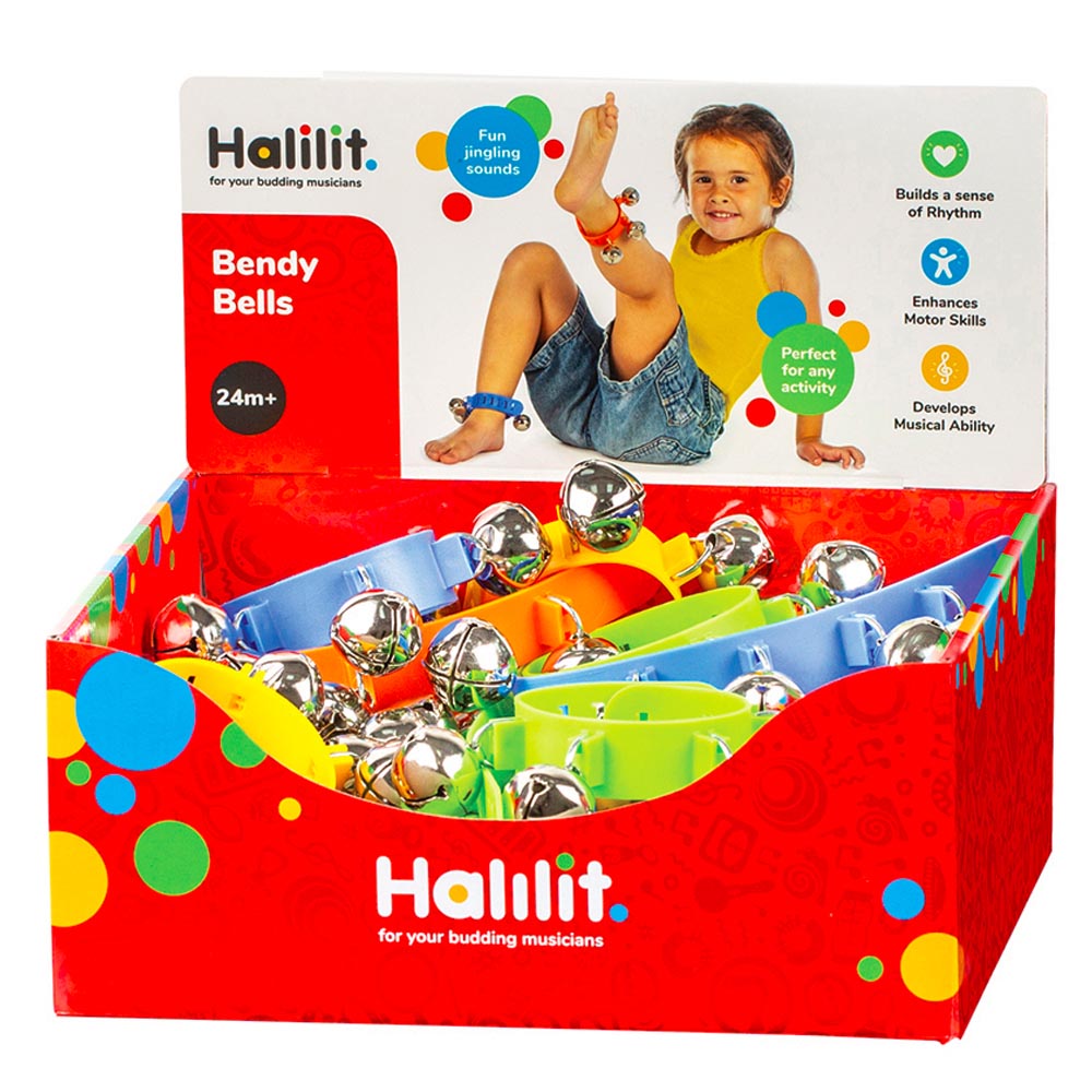 Muñequera con 4 cascabeles, de hermosos colores, seguros y fácil de usar. Los instrumentos son ideales para acercar a los niños y niñas a la música y así desarrollar sus sensibilidad y creatividad. Fabricado en plástico, de material suave y resistente y colores vivos. Colores surtidos. Precio por unidad.