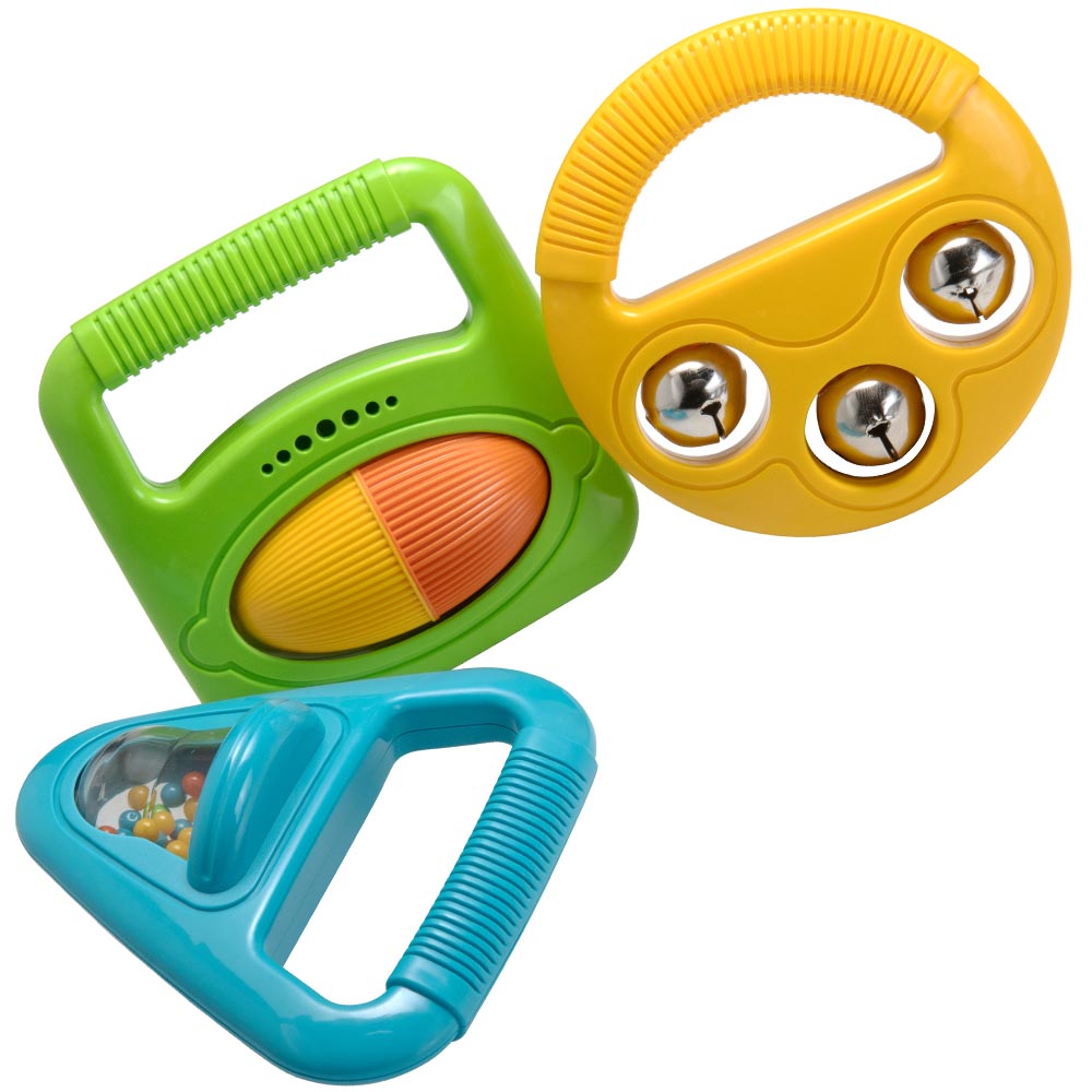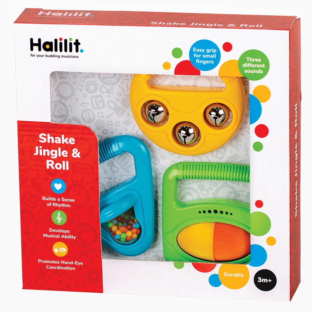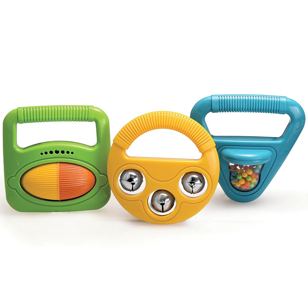 Un set de 3 instrumentos para los mas pequeños, para empezar desde pequeños en el increíble mundo de la música. Brillante y colorido shaker, campanas y rattle roller, cada uno produce sonidos distintos y son fácil de utilizar para manos pequeñas.