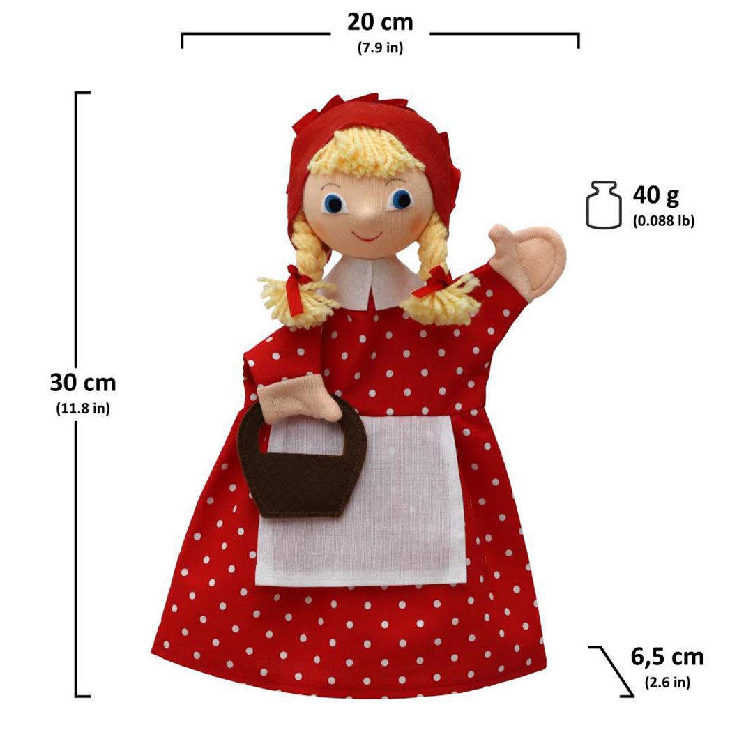 Hermoso títere del clásico personaje de caperucita roja fabricado en género con gran detalle. Moravska es una marca de República Checa especializada en títeres y marionetas fabricados a mano con muchos años de experiencia, sus diseños son ideales para el fácil manejo de niños y adultos. Los títeres son juegos ideales para el desarrollo de las habilidades sociales de los más pequeños, una forma hermosa de contar historias invitando a los más pequeños a viajar a los mundos de fantasía más maravillosos. El personaje mide 30 cm. Recomendado para niños de más de 36 meses ya que contiene partes pequeñas.