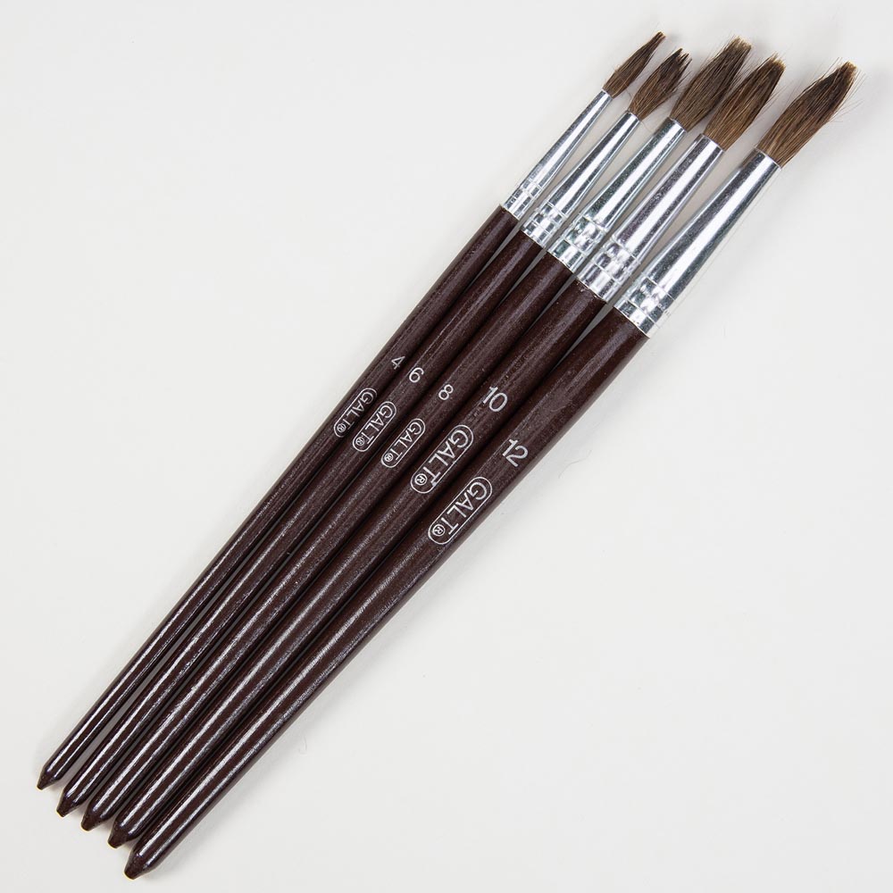 5 pinceles de diferentes tamaños con mangos de madera. De el numero 4, 6, 8, 10 y 12.