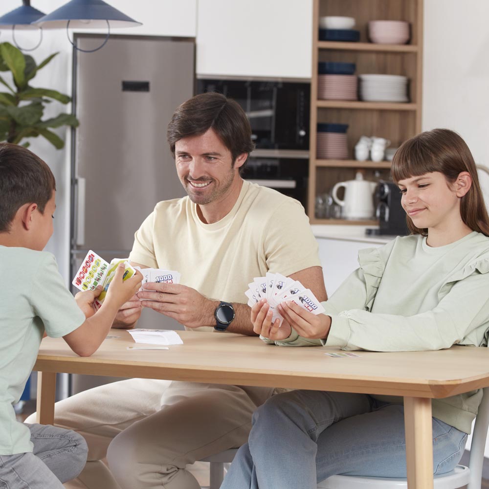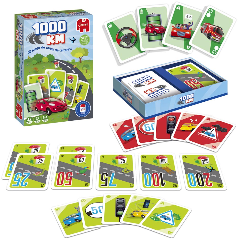 Divertido juego de cartas para jugar en familia y con amigos. Juega con las cartas de kilómetros y corre la carrera con tu vehículo eléctrico hasta llegar a la meta de los 1000 kilómetros. Puedes obstaculizar a los demás jugadores con las cartas de ataque, defenderte con las cartas de defensa y las de protección para dar el «el golpe maestro». Recomendado a partir de 6 años para hasta 6 jugadores. De material suave y resistente.