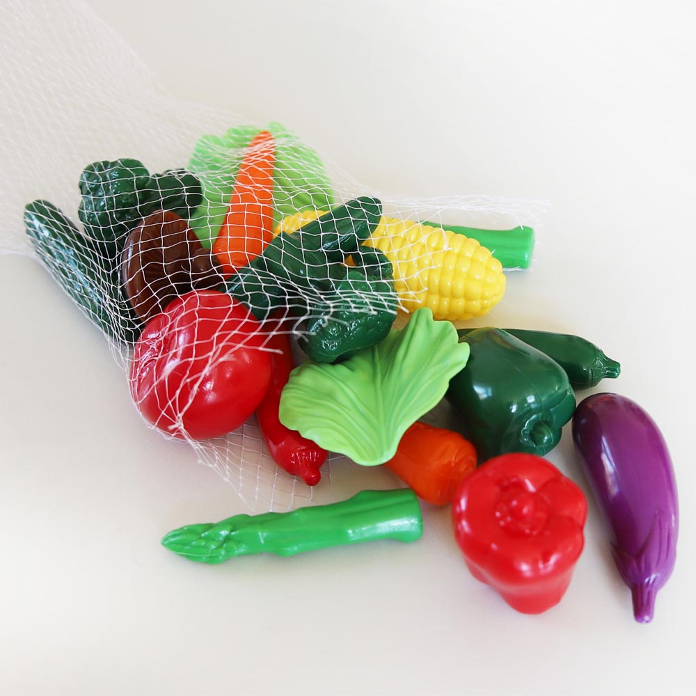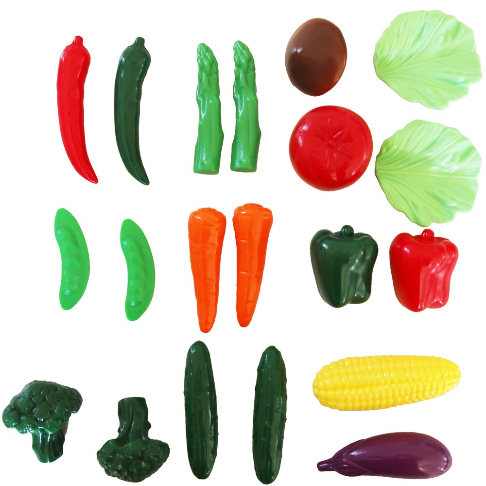Set de 20 verduras diferentes. De tamaño adecuado para la mano del niño, de colores vistosos y gran detalle imitando el modelo real.
