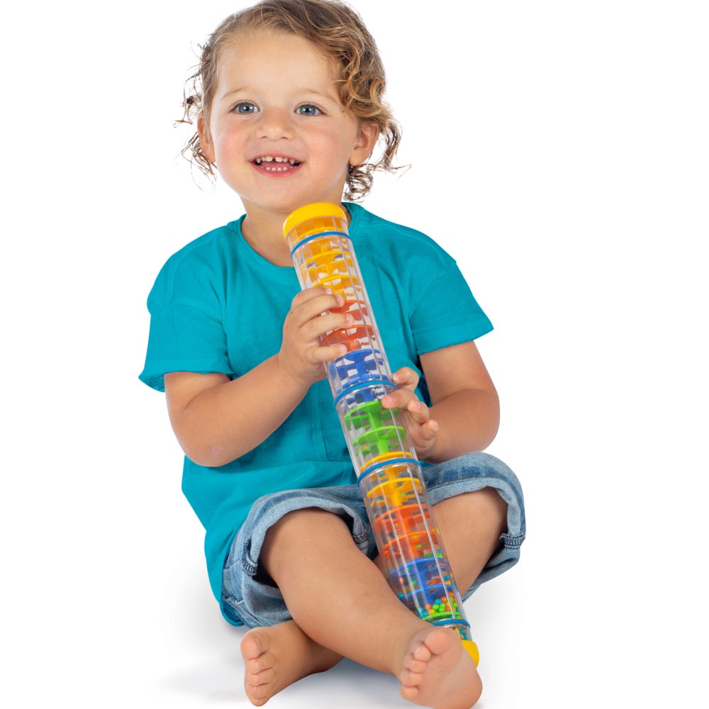 Palo de agua grande donde los niños pueden ver a través de las paredes de el prisma. Calmantes y relajantes sonidos de lluvia. Los instrumentos son ideales para acercar a los niños y niñas a la música y así desarrollar sus sensibilidad y creatividad. Fabricado en plástico, de material suave y resistente y colores vivos.