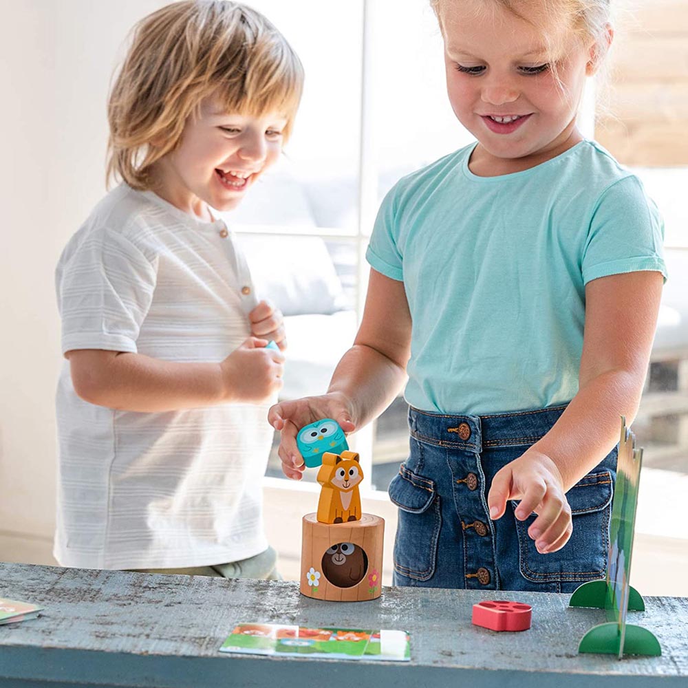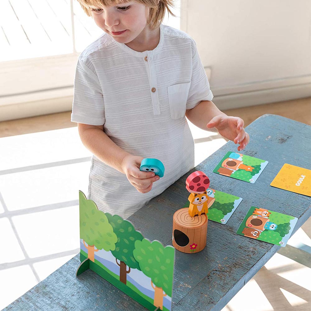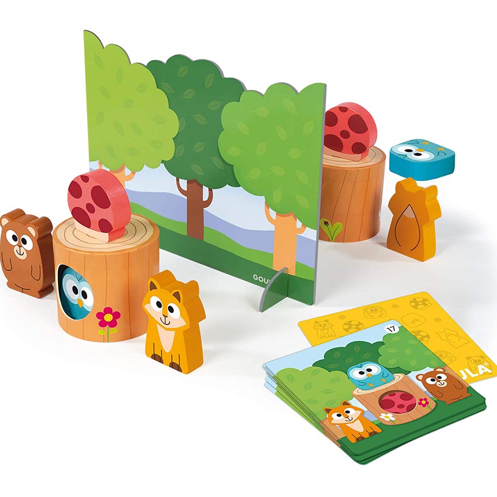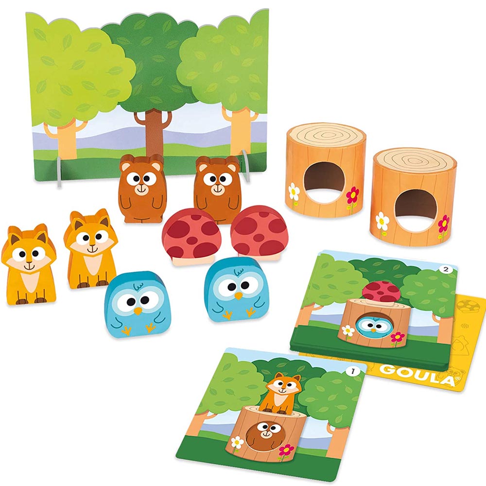 Divertido juego de memoria que ayuda a aprender posiciones espaciales a través del juego. Los jugadores deberán memorizar el dibujo de la tarjeta y construirlo antes que el otro jugador lo haga. Con la tarjeta a la vista, los jugadores pueden describir las posiciones al otro jugador para que lo construya. Contiene 20 tarjetas de dificultad progresiva.