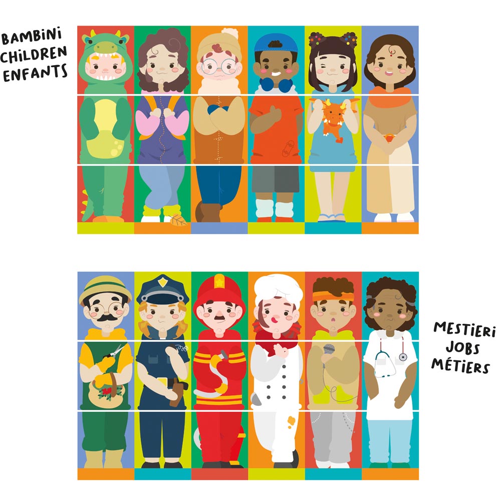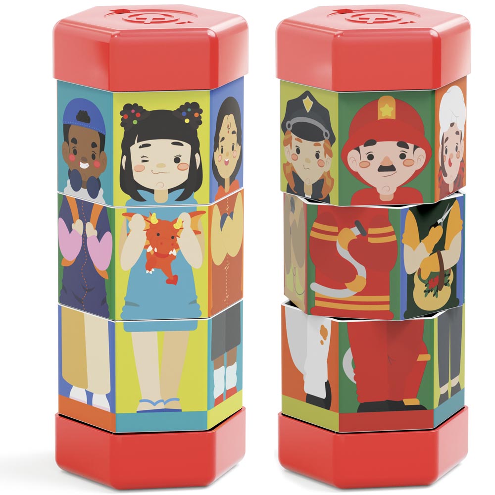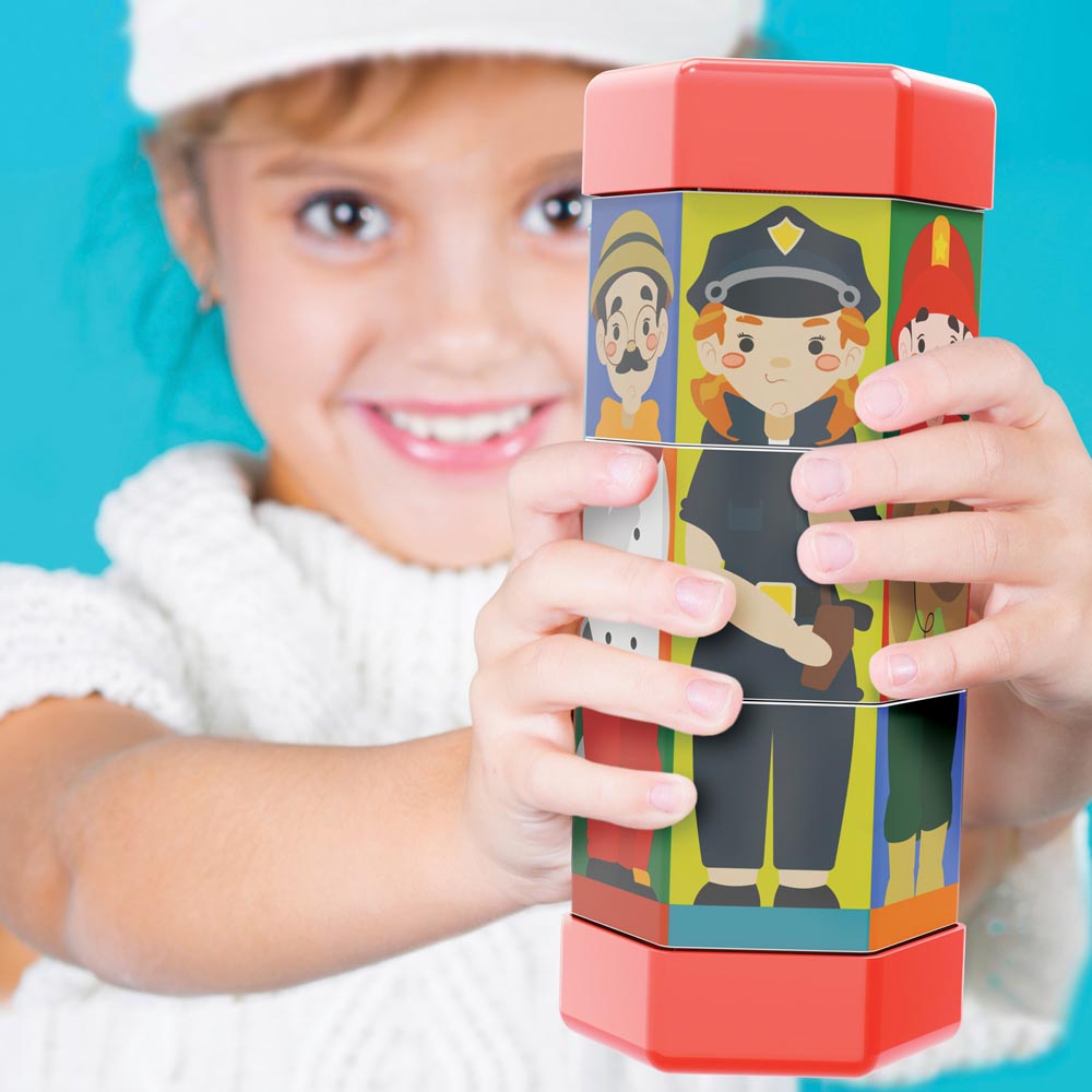 Divertido puzle rotante con entretenidas ilustraciones de niños y oficios, un juego para desarrollar las habilidades de observación y la motricidad fina. De material suave y colores vivos.